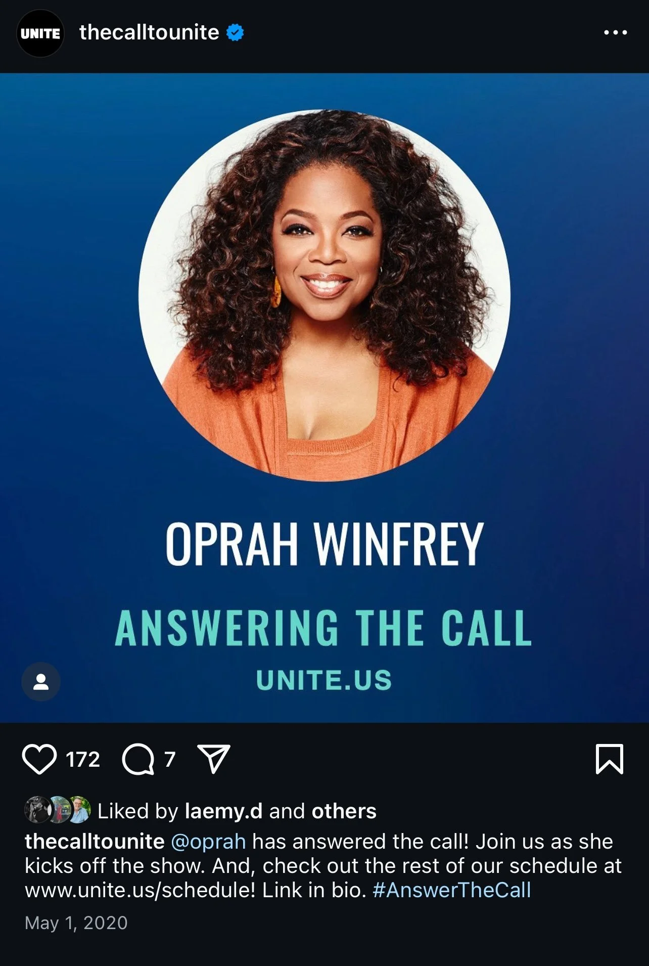 we developed a social media campaign and toolkit to empower participants to share their own messages as part of The Call to Unite. The toolkit included ready-to-use graphics, messaging, and resources that made it simple for individuals to spread hope and connection across their networks. Alongside this, our team also created original posts for The Call to Unite social media channels, ensuring a consistent, uplifting visual identity that amplified the collective message of unity during a time of global isolation.
